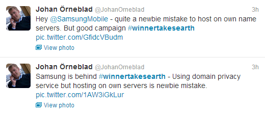 A Look at the domain name server at which mysteriouscircle.com was registered has confirmed beyond doubt that #Samsung are the proud owners of #WINNERTAKESEARTH . So get on with it. (The screen shot below)